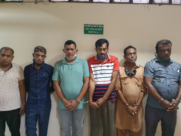 আটক ব্যক্তিরা হলেন— শাহানুর শাহিন (৫৩), মো. ইকবাল (৪৭), নুরুল কবির (৪৫), মো. তৌহিদুল আলম (৪০), মো. ওসমান গনি দুলু (৪৫) ও মো. নুরুল আফছার টিপু (৪৫)।