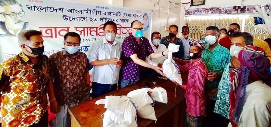 রাঙামাটি শহরের এক হাজার পরিবারের মাঝে ত্রাণ সহায়তা প্রদান করেছে রাঙামাটি জেলা আওয়ামীলীগ ও অঙ্গয়-সহযোগী সংগঠন।