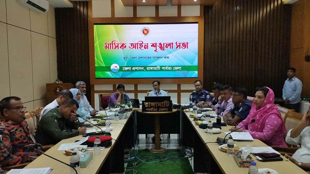 রাঙামাটি পার্বত্য জেলার মাসিক আইন-শৃঙ্খলা সভা অনুষ্ঠিত হয়। রবিবার (১০ সেপ্টেম্বর) সকালে জেলা প্রশাসক সম্মেলন কক্ষে এ সভা অনুষ্ঠিত হয়। এতে সভাপতিত্ব করেন জেলা প্রশাসক মোহাম্মদ মোশারফ হোসেন খান।