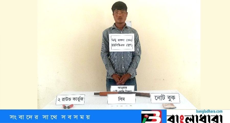 আটক মিন্টু চাকমা ওরফে জ্যোতি চাকমা (৩৯) নানিয়ারচর উপজেলার বেতছরির ১৮ মাইল এলাকার পদ্মা মোহন চাকমার ছেলে।