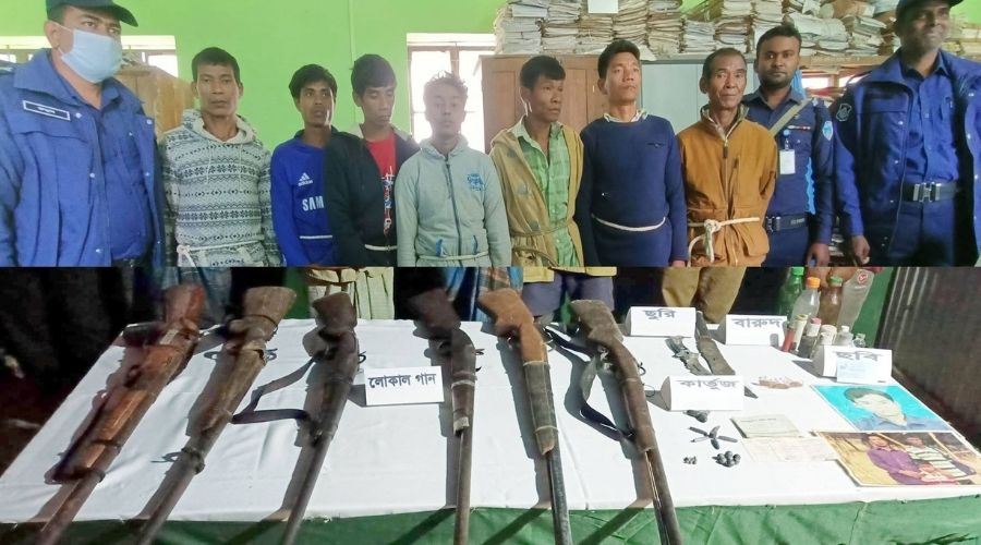 আটককৃতরা হলো- চাইলগ্য ত্রিপুরা(৬০), বলিয়াম ত্রিপুরা(৪৮), বিরমনি ত্রিপুরা(৪৫), বিষ্ণমনি ত্রিপুরা(৪৪), লক্ষন ত্রিপুরা(৩০), জীবন ত্রিপুরা(২৬), বীর বাহাদুর ত্রিপুরা(২৬)।