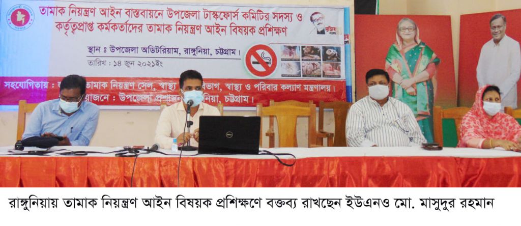 রাঙ্গুনিয়ায় তামাক নিয়ন্ত্রণ আইন বাস্তবায়নে উপজেলা টাস্কফোর্স কমিটির সদস্য ও কর্তৃত্বপ্রাপ্ত কর্মকর্তাদের তামাক নিয়ন্ত্রণ আইন বিষয়ক প্রশিক্ষণ অনুষ্ঠিত হয়েছে।