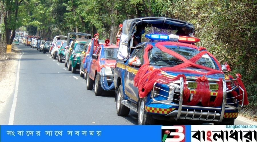 শনিবার (২৭ মার্চ) সকাল ১০ টার দিকে সুসজ্জিত গাড়ির বহর নিয়ে উপজেলা ক্যাম্পাস থেকে আনন্দ শোভাযাত্রা বের হয়। শোভাযাত্রাটি চট্টগ্রাম-কাপ্তাই সড়কের চন্দ্রঘোনা ঘুরে পোমরা তাপবিদ্যুৎ ফটক হয়ে একই স্থানে এসে শেষ হয়।