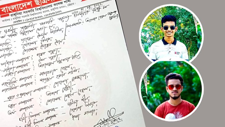বৃহস্পতিবার (১ সেপ্টেম্বর) বেলা ১২ টায় রাঙ্গুনিয়া সরকারি কলেজ ছাত্রলীগ সংসদের সভাপতি সোহেল হোসেন ও সাধারণ সম্পাদক আরমান সিকদারের যৌথ সাক্ষরিত বিজ্ঞপ্তিতে এ তথ্য জানানো হয়।