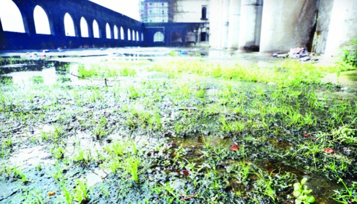 ভবনের বিভিন্ন তলার ব্যবহৃত হাত-মুখ ধোয়ার পানি গড়িয়ে পড়ছে সেখানে। তাই ছাদেও পড়েছে শেওলা। এমনকি ছাদের সেই পানি দেয়াল গড়িয়ে পড়ছে নিচের বাগানে। প্রাঙ্গণের কয়েকটি স্থানে সারাবছরই পানি জমে থাকে। ভবনের ঠিক পূর্ব পাশের গেট ঘেঁষেও অনবরত ময়লা পানি বের হচ্ছে বিভিন্ন সরবরাহ লাইন থেকে। দুর্ঘন্ধের কারণে নাক চেপে হাঁটতে হয়। ভবনের বিভিন্ন কার্নিশ ও ছাদেও একই চিত্র। কোথাও পানি জমতে জমতে শেওলা ধরে গেছে। আর এসির পানি তো নিয়মিতই মেঝেতে পড়ছে দেয়াল গড়িয়ে।