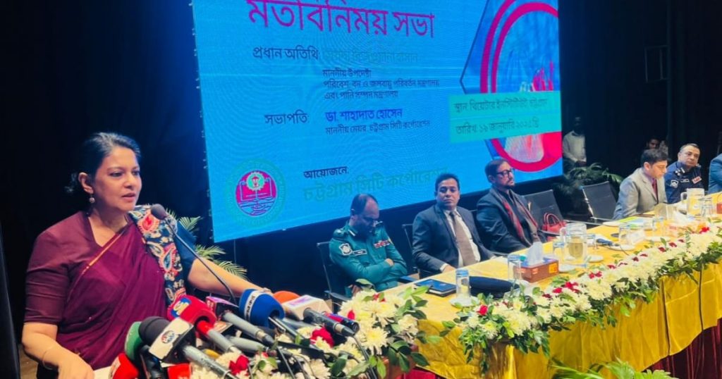 রবিবার (১৯ জানুয়ারি) সকালে নগরের থিয়েটার ইনস্টিটিউটে চট্টগ্রাম সিটি করপোরেশনের (চসিক) মেয়র ডা. শাহাদাত হোসেনের সভাপতিত্বে চসিক আয়োজিত পলিথিনবিরোধী এবং পরিবেশ সংরক্ষণ বিষয়ে স্টেকহোল্ডারদের সাথে মতবিনিময় সভায় প্রধান অতিথির বক্তব্যে তিনি এসব কথা বলেন পরিবেশ ও জলবায়ু উপদেষ্টা সৈয়দা রিজওয়ানা হাসান।