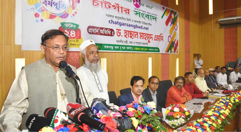 শুক্রবার (২৪ নভেম্বর) সন্ধ্যায় চট্টগ্রাম প্রেস ক্লাবের বঙ্গবন্ধু হলে সাপ্তাহিক ‘চাঁটগার সংবাদ’ পত্রিকার ১১তম বর্ষপূর্তি আলোচনা সভায় প্রধান অতিথির বক্তব্যে তথ্যমন্ত্রী এ কথা বলেন।
