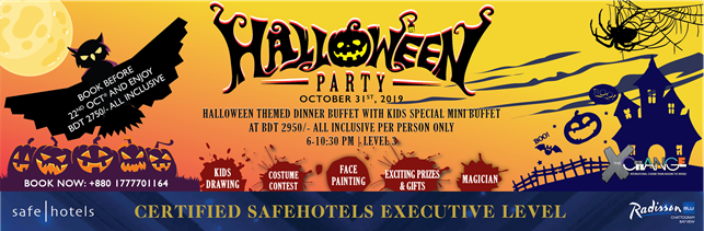বৃহস্পতিবার (৩১ অক্টোবর) প্রতি বছরের ন্যায় এই বছরও ভুতুরে গল্প প্রেমীদের হ্যালোয়িনের আনন্দ ও শিহরণে মাতাতে পূর্ণ রুপে প্রস্তুত রেডিসন ব্লু চট্টগ্রাম বে ভিউ।