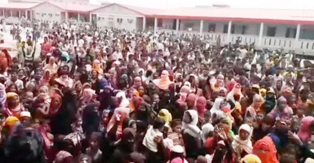 নোয়াখালী ভাসানচরে ইউএনএইচসিআর’র প্রতিনিধি দলের পরিদর্শনকালে রেশনসহ বিভিন্ন সুযোগ-সুবিধা বৃদ্ধির দাবিতে বিক্ষোভ মিছিল করেছে রোহিঙ্গারা।