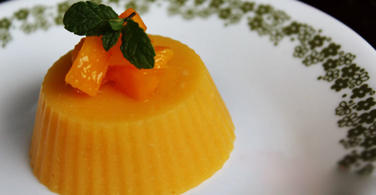 জেলাটিন পানিতে কয়েক মিনিট ভিজিয়ে রাখুন। একটি পাত্রে ডিমের কুসুম, চিনি এবং দুধ ভালো করে ফেটে নিন। ভালো করে মেশানো হয়ে গেলে এতে জেলাটিন দিয়ে দিন। জেলাটিন দেওয়ার পর চুলা নিভিয়ে ফেলুন। চুলা থেকে জেলাটিন ভালো করে মেশান। তারপর এতে আমের রস দিয়ে দিন। আমের রস দিয়ে আরও কিছুক্ষণ নাড়ুন। এরপর পরিবেশন পাত্রে ঢেলে ফ্রিজে ২ ঘণ্টার জন্য রেখে দিন। দুই ঘণ্টা পর ফ্রিজ থেকে বের করে ক্রিম, আমের টুকরো, ডালিম এবং পুদিনা পাতা দিয়ে পরিবেশন করুন।