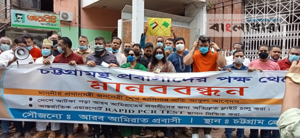বক্তারা আরও বলেন, ‘ভারত, পাকিস্তান, নেপাল ও শ্রীলংকাসহ দেশগুলো তাদের কূটনীতিক সমস্যা সমাধান ও করোনা র্যাপিড টেস্ট বুথ স্থাপন করায় ৫ আগস্ট থেকে তাদের ফ্লাইট চালু করে দেয়। কিন্তু অত্যন্ত দুঃখের বিষয় আমাদের আন্তর্জাতিক বিমানবন্দরগুলোতে এখনো করোনার টেস্টে এ বুথ স্থাপন করা হয়নি।যার ফলে বাংলাদেশীদের প্রবেশে নিষেধাজ্ঞা দিয়েছে আরব আমিরাত। এর মাশুল দিতে হচ্ছে ১৫ হাজার প্রবাসীকে।‘