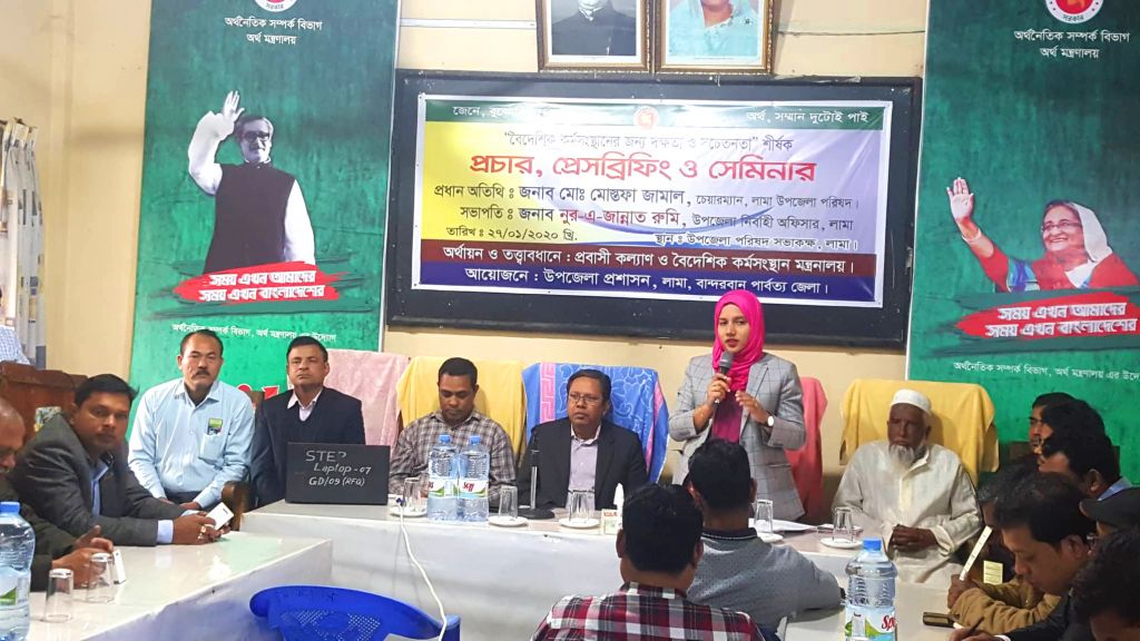 বান্দরবানের লামায় “বৈদেশিক কর্মসংস্থানের জন্য দক্ষতা ও সচেতনতা” শীর্ষক প্রচার, প্রেসব্রিফিং ও সেমিনার অনুষ্ঠিত হয়েছে। প্রবাসী কল্যাণ ও বৈদেশিক কর্মসংস্থান মন্ত্রণালয়ের অর্থায়ন ও তত্ত্বাবধানে লামা উপজেলা প্রশাসনের আয়োজনে সোমবার (২৭ জানুয়ারি) উপজেলা পরিষদ হলরুমে দিনব্যাপী এই সেমিনার অনুষ্ঠিত হয়।