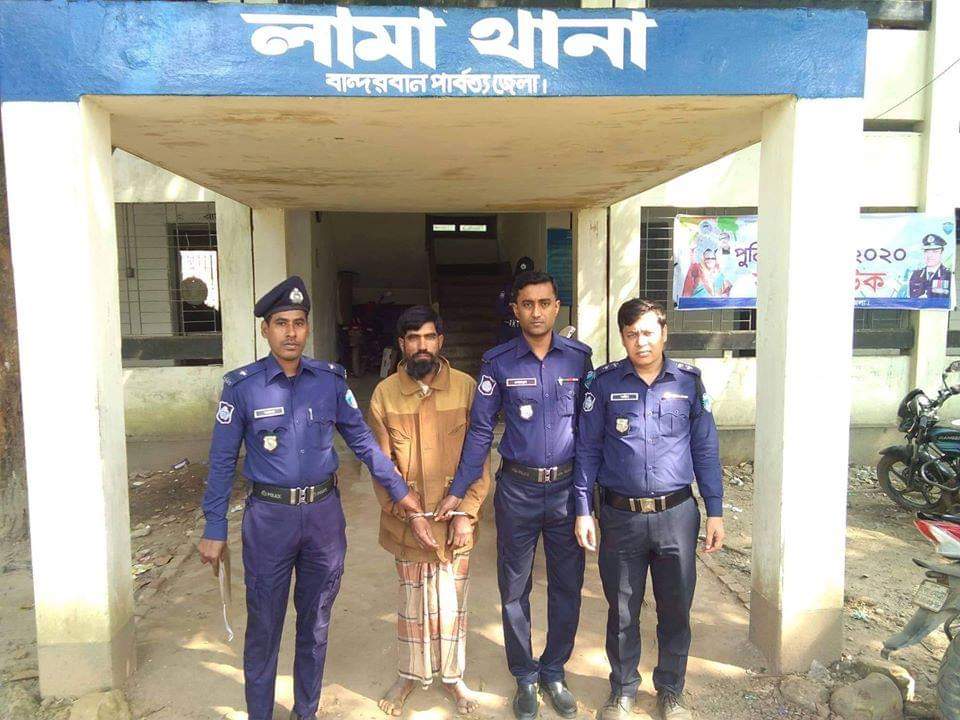 রোববার লামা থানা পুলিশের অফিসার ইনচার্জ (ওসি) অপ্পেলা রাজু নাহা’র নির্দেশে এসআই আরিফের রহমান, এএসআই আমিনুল ইসলাম ও লিংকন দেব অভিযান পরিচালনা করে তাকে গ্রেফতার করে।
