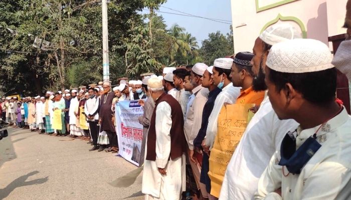 শুক্রবার (২১ জানুয়ারি) জুমা নামাজের পর ওই মসজিদের সম্মুখে স্থানীয়রা মানববন্ধন করে।