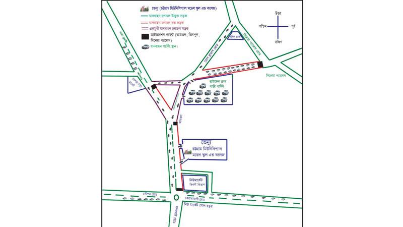 নির্দেশনায় বলা হয়, মঙ্গলবার (২০ ফেব্রুয়ারি) রাত ১০টা থেকে নগরীর তিনপুল থেকে আমতল, আমতল থেকে নিউ মার্কেট ও সিনেমা প্যালেস থেকে রাইফেল ক্লাব রোডে সকল প্রকার যানবাহন চলাচল বন্ধ থাকবে। নিউ মার্কেট থেকে আমতল রোডে দ্বিমুখী যান চলাচল বজায় থাকবে।