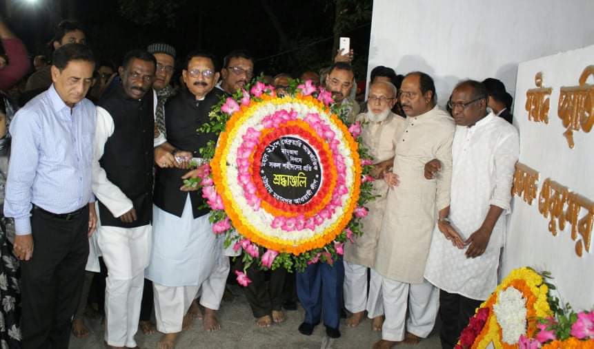 এ সময় শহীদ বেদিতে ফুল দিয়ে শ্রদ্ধা নিবেদন করেন সংসদ সদস্য ও আওয়ামী লীগের প্রেসিডিয়াম সদস্য ইঞ্জিনিয়ার মোশাররফ হোসেন, সিটি মেয়র আ জ ম নাছির উদ্দীন ও কাউন্সিলররা।