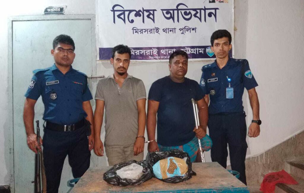 মিরসরাই থানার ভারপ্রাপ্ত কর্মকর্তা (ওসি) মো. কবির হোসেন বলেন, রোববার রাতে মঘাদিয়া ইউনিয়নের বদিউল্লাহ পাড়া এলাকার সাহাব উদ্দিনের দোকানের পেছনের খালি জায়গায় অভিযান চালিয়ে ৫০০ গ্রাম গাঁজাসহ দুইজনকে আটক করা হয়েছে। পুলিশের উপস্থিতি টের পেয়ে মাদক কারবারি মো. জুয়েল পালিয়ে যায়।