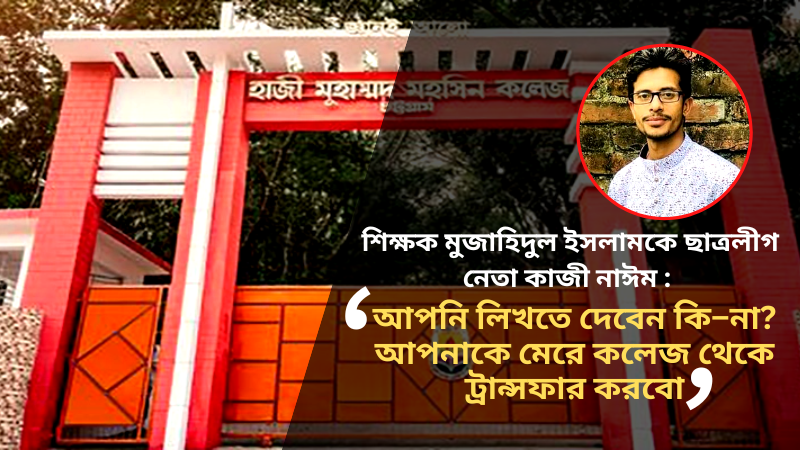 চট্টগ্রামের হাজী মুহাম্মদ মহসিন কলেজের শিক্ষককে পিটিয়ে বদলির হুমকি দেয়ার অভিযোগ উঠেছে একই কলেজের ছাত্রলীগের আহ্বায়ক কাজী নাঈমের বিরুদ্ধে। এ ঘটনায় সহকর্মীকে লাঞ্ছিত করার প্রতিবাদে পদত্যাগ করেছেন শিক্ষক পরিষদের সাধারণ সম্পাদক সুবীর দাশ।