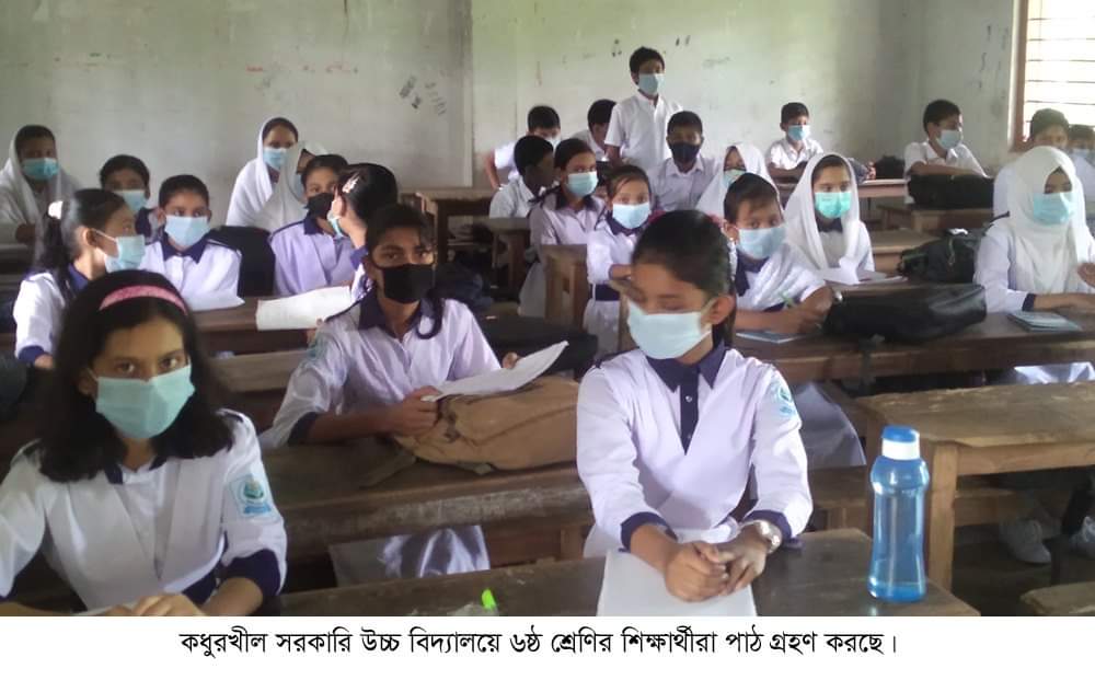 উপজেলার কধুরখীল বালিকা উচ্চ বিদ্যালয়ে গিয়ে দেখা যায়, পাঠদান চলছিলো শ্রেণির শিক্ষার্থীদের। শ্রেণি কক্ষের প্রতি বেঞ্চে বসেছে দুইজন করে শিক্ষার্থী। তবে স্বাস্থ্য সুরক্ষায় হাত ধোয়া, মুখে মাস্ক পড়ার ক্ষেত্রে সচেতন রয়েছেন শিক্ষক-শিক্ষার্থীরা। বিদ্যালয়ের প্রত্যেক শিক্ষার্থীর তাপমাত্রা মাপা হয় নিয়মিত