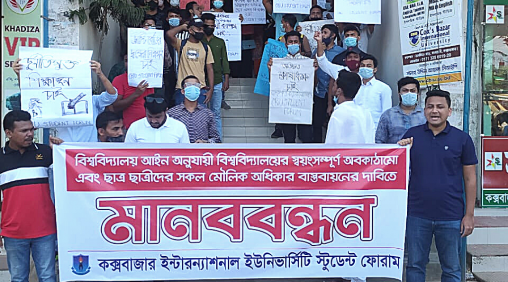শিক্ষার সুষ্ঠু পরিবেশ নিশ্চিতে রাষ্ট্রপতি নিয়োগকৃত উপাচার্য (ভিসি) সহ ২০ দফা দাবী আদায়ের লক্ষ্যে কক্সবাজার ইন্টারন্যাশনাল ইউনিভার্সিটির শিক্ষার্থীরা ফুঁসে উঠেছে।