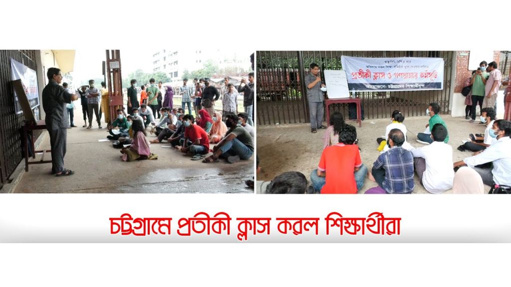 শিক্ষা প্রতিষ্ঠান খুলে দেওয়ার দাবিতে চট্টগ্রামে শিক্ষার্থীদের বিক্ষোভ ও প্রতীকী ক্লাস কর্মসূচি