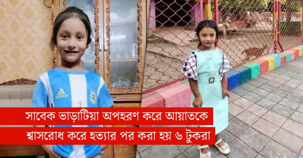 তিনি আরও বলেন, ‘আবির জানিয়েছে, মুক্তিপণের উদ্দেশ্যে ঘটনার দিন বিকেলে আয়াতকে সে অপহরণের চেষ্টা করে। এ সময় চিৎকার করলে তাকে শ্বাসরোধে হত্যা করে সে। পরে মরদেহ আকমল আলী সড়কের বাসায় নিয়ে ছয় টুকরো করে।’