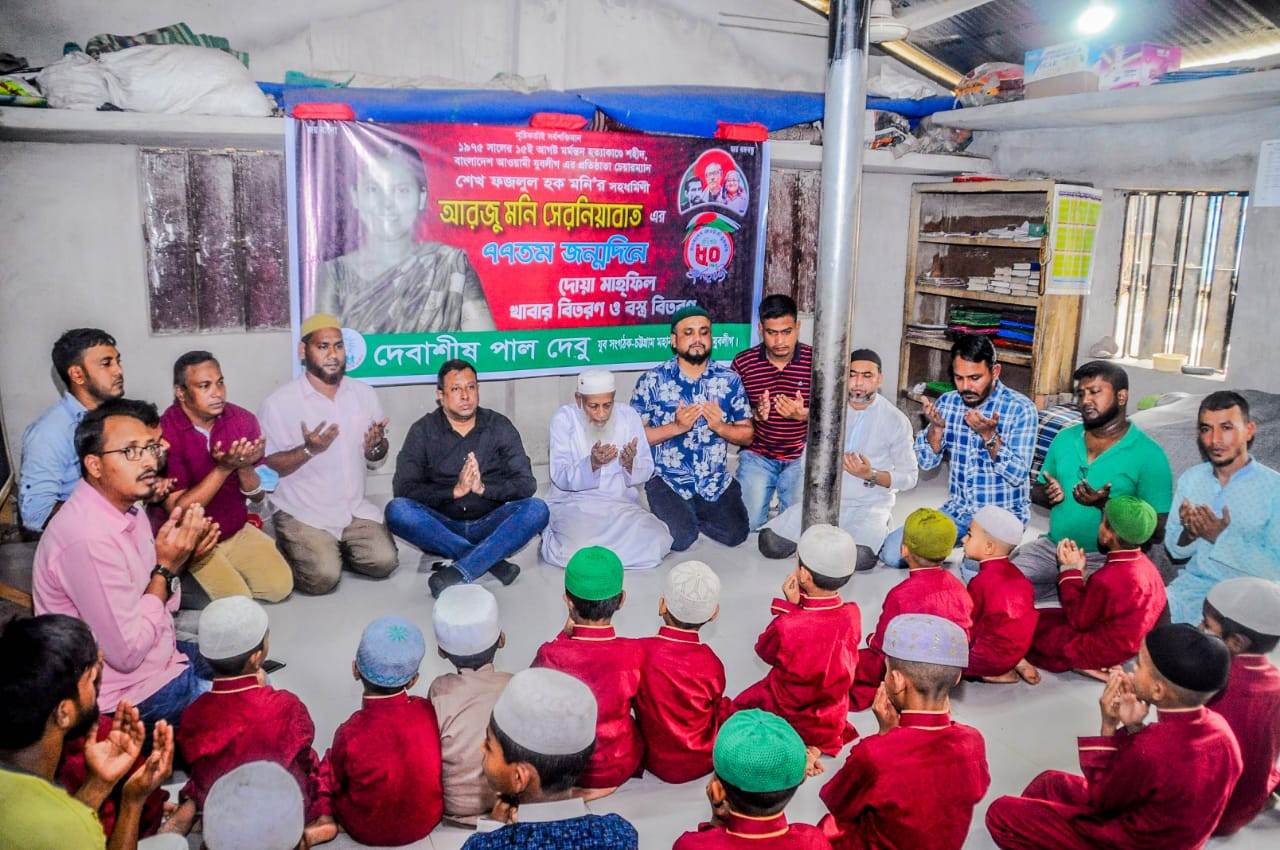 বাংলাদেশ আওয়ামী যুবলীগের প্রতিষ্ঠাতা চেয়ারম্যান শেখ ফজলুল হক মণির সহধর্মিণী ও বাংলাদেশ আওয়ামী যুবলীগের চেয়ারম্যান শেখ ফজলে শামস পরশের মাতা আরজু মণি সেরনিয়াবাতের ৭৭তম জন্মদিন উপলক্ষে যুবলীগ নেতা দেবাশীষ পাল দেবুর উদ্যোগে দোয়া মাহফিলের আয়োজন করা হয়।