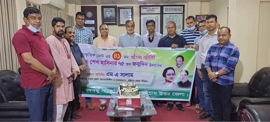 বঙ্গবন্ধু সাংস্কৃতিক জোট চট্টগ্রাম উত্তর জেলার উদ্যোগে সংগঠনের ৪১তম প্রতিষ্ঠাবার্ষিকী ও দেশরত্ন প্রধানমন্ত্রী শেখ হাসিনার ৭৫ তম জন্মদিন উপলক্ষে আলোচনা সভা অনুষ্ঠিত হয়েছে।