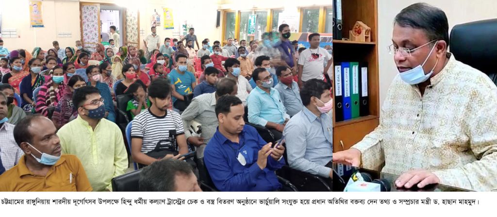 শনিবার (০৯ অক্টোবর) সন্ধ্যায় চট্টগ্রামের রাঙ্গুনিয়ায় শারদীয় দূর্গোৎসব উপলক্ষে হিন্দু ধর্মীয় কল্যাণ ট্রাস্ট্রের চেক ও বস্ত্র বিতরণ অনুষ্ঠানে ভার্চুয়ালি সংযুক্ত হয়ে প্রধান অতিথির বক্তব্যে তিনি এসব কথা বলেন।