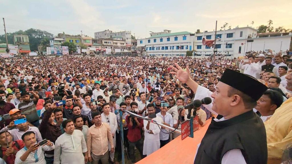 খিজারি স্টেডিয়ামের উত্তর প্রান্তে নির্মিত বিশাল উন্মুক্ত মঞ্চে দুপুরের পর থেকে চলে নেতাকর্মীদের বক্তব্য। জনসমাবেশকে ঘিরে জনতার বাঁধভাঙ্গা উচ্ছাস ছড়িয়ে পড়ে স্টেডিয়ামের বাইরে চৌমুহনী, বাইপাস ফুটবল চত্বরসহ আশপাশের ৩ কিলোমিটার সড়কে।