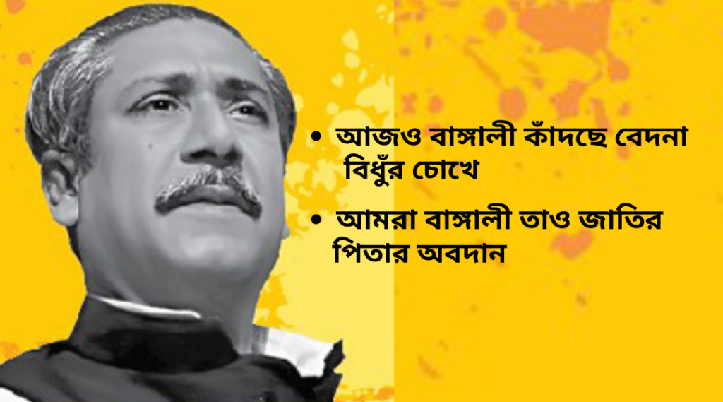 ‘৭৫ এর এই দিনে জাতি হারিয়েছে সর্বকালের শ্রেষ্ঠ বাঙ্গালী বঙ্গবন্ধুকে। মনের মণিকোঠায় স্মরণ করে আজ বাঙ্গালী কাঁদছে বেদনা বিধুঁর চোখে। যিনি ছিলেন বাংলার মাইলফলক। জাতির পিতাই সর্বপ্রথম আমাদের মায়ের ভাষা রক্ষার জন্য বঙ্গবন্ধু রাষ্ট্রভাষা বাংলা চান। তাঁর এই নিঃস্বার্থ আত্মত্যাগ আমাদের মাতৃভাষাকে কেড়ে নিতে দেয়নি। পাকিস্তানীরা বঙ্গবন্ধুকে হটাতে নানা কৌশল নিয়েছিল, কিন্তু বঙ্গবন্ধুকে টলাতে পারেনি।’