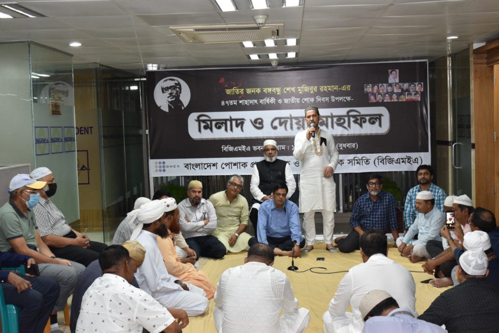 বুধবার (১৭ আগস্ট) নগরীর খুলশীস্থ বিজিএমইএ ভবনে এ মিলাদ মাহফিল অনুষ্ঠিত হয়।