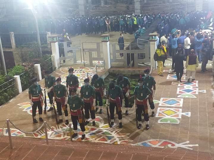 শহীদদের শ্রদ্ধা জানাতে মধ্যরাতে ঘড়ির কাঁটা ১২টা ছোঁয়ার আগেই হাজারো মানুষ হাতে ফুল নিয়ে দাঁড়িয়ে যান শহীদ মিনার অভিমুখী লাইনে। বিশিষ্টজনদের শ্রদ্ধা জানানোর পর উন্মুক্ত হয় শহীদ মিনার।