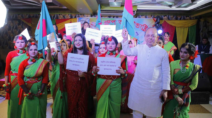 কারখানায় মেশিনের শব্দ আর সুই-সুতার ফোঁড়ে বাঁধা যাদের জীবন, তাঁদের আজ কোনো কাজ নেই। সময়টা যেন বাঁধভাঙা আনন্দের। এ যেন মালিক-শ্রমিকের অন্যরকম এক মিলনমেলা। দেশাত্ববোধক গানের তালে তাদের হাতে উড়ছে লাল সবুজের জাতীয় পতাকা। পোশাক শ্রমিকদের হাতে শোভা পাচ্ছে আওয়ামীলীগ সরকারের বিভিন্ন উন্নয়ন চিত্রের লেখা সম্বলিত প্ল্যাকার্ড।