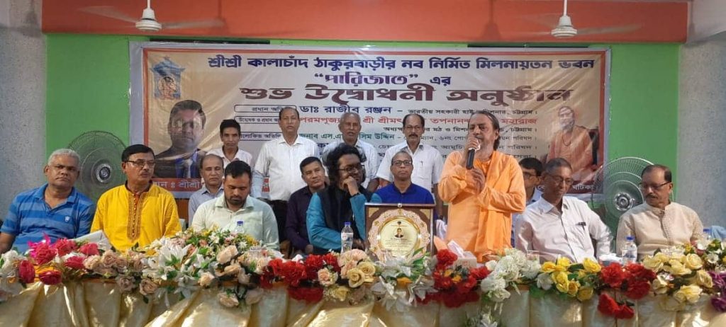 চট্টগ্রামের বোয়ালখালীর ঐতিহ্যবাহী শ্রীশ্রী কালাচাঁদ ঠাকুরবাড়ির নবনির্মিত মিলনায়তন ভবন ‘পারিজাত’র উদ্বোধন করা হয়েছে।