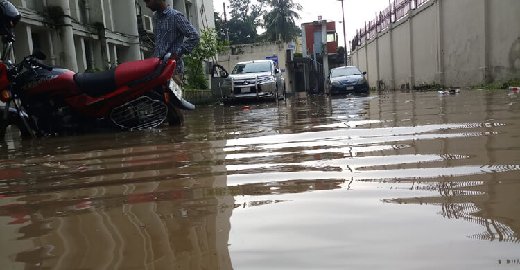 জলাবদ্ধতার কারণে কেউ কেউ পথ ঘুরে ভবনগুলোর সংযোগ সেতু দিয়ে আসা-যাওয়া করছেন। আর যেসব ভবনে সংযোগ সেতু নেই, সেসব ভবনে চলাচল করতে হলে হাঁটু পানি পার হয়েই যেতে হচ্ছে।