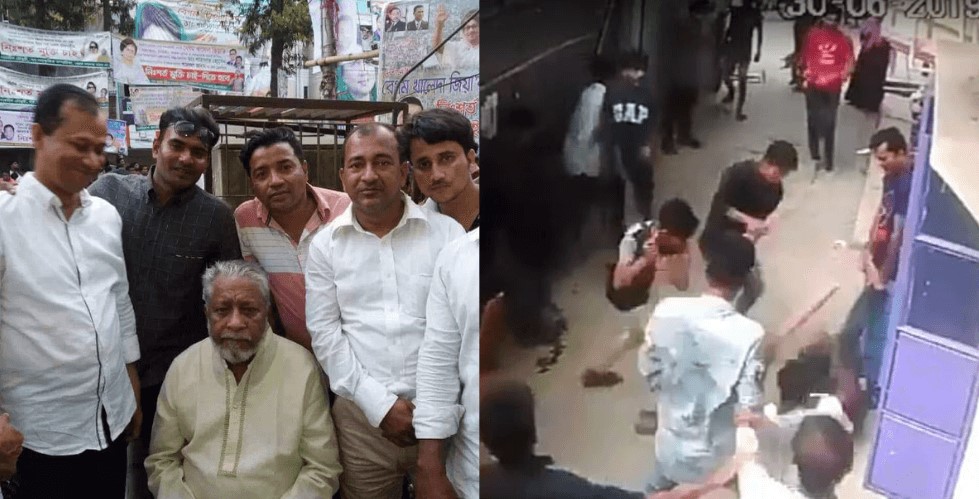 প্রথম ছবিতে মহানগর বিএনপি অফিসের সামনে সাবেক সাংসদ মোস্তফা কামাল পাশার সাথে পিছনে কালো শার্ট পরা এবং দ্বিতীয় ছবিতে জানলার পাশে কালো টি-শার্ট পড়া মহসিনের পা ধরে রাখা লোকটি জুয়েল। ছবি: সংগৃহিত।