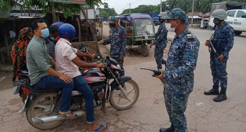 করোনা ভাইরাস সংক্রমণ রোধে বাংলাদেশ সরকারের নির্দেশনা বাস্তবায়নে অসামরিক প্রশাসনকে সহায়তা প্রদানের লক্ষ্যে সমুদ্র ও উপকুলীয় এলাকায় সর্বাত্মক লকডাউন নিশ্চিত করতে অভিযান পরিচালনা করছে নৌবাহিনী। এসকল এলাকাগুলোতে আইন শৃঙ্খলা রক্ষাকারী বাহিনীর পাশাপাশি নৌসদস্যরা অপ্রয়োজনীয় চলাচল রোধ, মাস্ক পরিধান, সামাজিক দূরত্ব বজায় রাখা, কোয়ারেন্টাইন নিশ্চিত করাসহ সংক্রমণ প্রতিরোধে গৃহীত সকল কার্যক্রমে অসামরিক প্রশাসনকে সহায়তা করে যাচ্ছে।