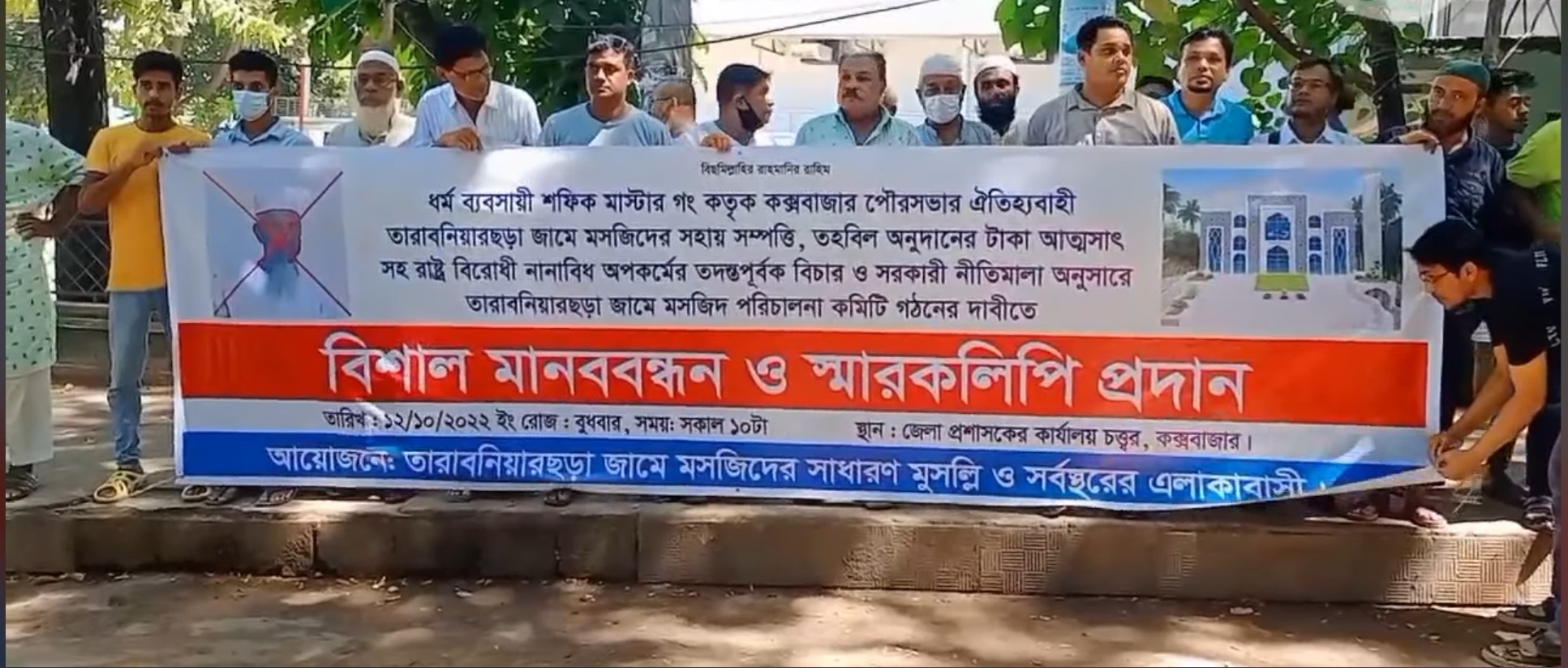 কক্সবাজারের জেলা প্রশাসক মো. মামুনুর রশীদ বলেন, তারাবনিয়রছরা জামে মসজিদ নিয়ে একটি অভিযোগ পেয়েছি। বিষয়টা সেনসেটিভ, তদন্তের পর পরবর্তী ব্যবস্থা নেয়া হবে।