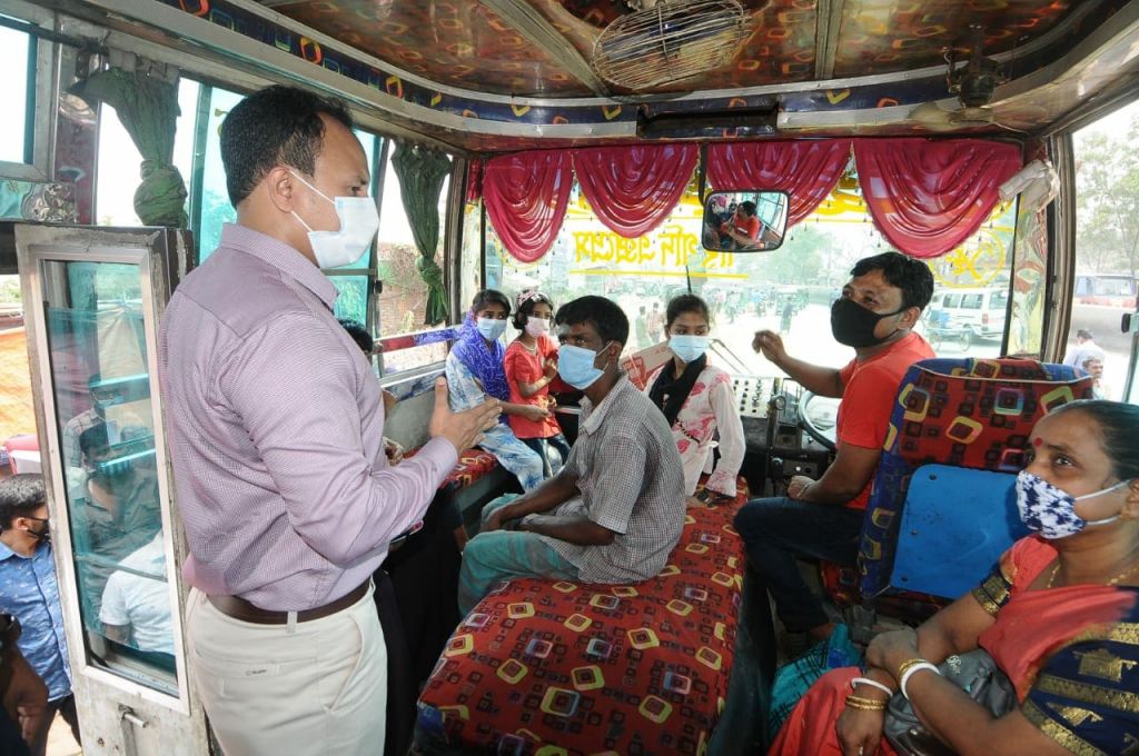 তিনি আরও বলেন, মহানগরীতে অনেক বাসে সিটের চেয়ে বেশি যাত্রী পরিবহনের বিষয়টি দেখা যায় এবং বেশি ভাড়া নেয়ার অভিযোগ পাওয়া যায়। যার ফলে কয়েকজন বাস চালকে অর্থদণ্ড করা হয়। এবং সতর্ক করা হয় যাতে ভবিষ্যতে সরকারি বিধিনিষেধ প্রতিপালন করে। পাশাপাশি মাস্ক না পরার কারনে ১০ জন যাত্রীকে অর্থদণ্ড করা হয়েছে।