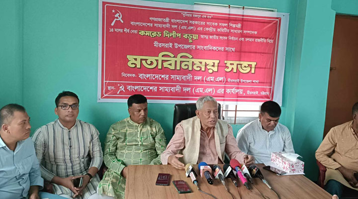 শুক্রবার (৩ অক্টোবর) সকাল ১১টায় চলমান রাজনীতি ও আসন্ন সংসদ নির্বাচন নিয়ে বাংলাদেশ সাম্যবাদী দল মিরসরাই উপজেলা কমিটির উদ্যোগে আয়োজিত সংবাদ সম্মেলনে বাংলাদেশ সাম্যবাদী দল (এম.এল) এর কেন্দ্রীয় কমিটির সাধারণ সম্পাদক ও ১৪ দলের শীর্ষ নেতা কমরেড দিলীপ বড়ুয়া এসব কথা বলেন।