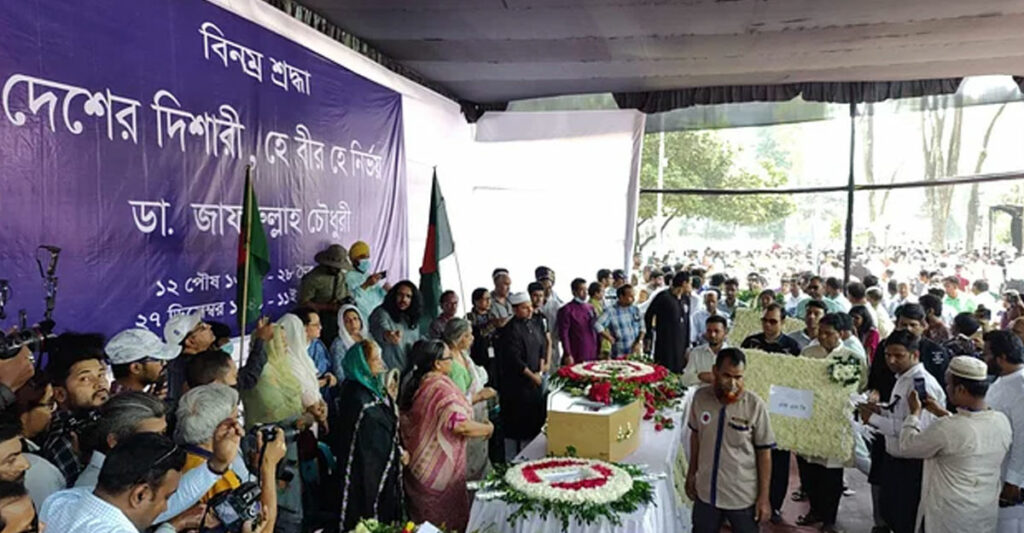 হাজারো মানুষ শেষবারের মতো শ্রদ্ধা জানাচ্ছেন গণস্বাস্থ্য কেন্দ্রের প্রতিষ্ঠাতা, বীর মুক্তিযোদ্ধা ডা. জাফরুল্লাহ চৌধুরীকে।
