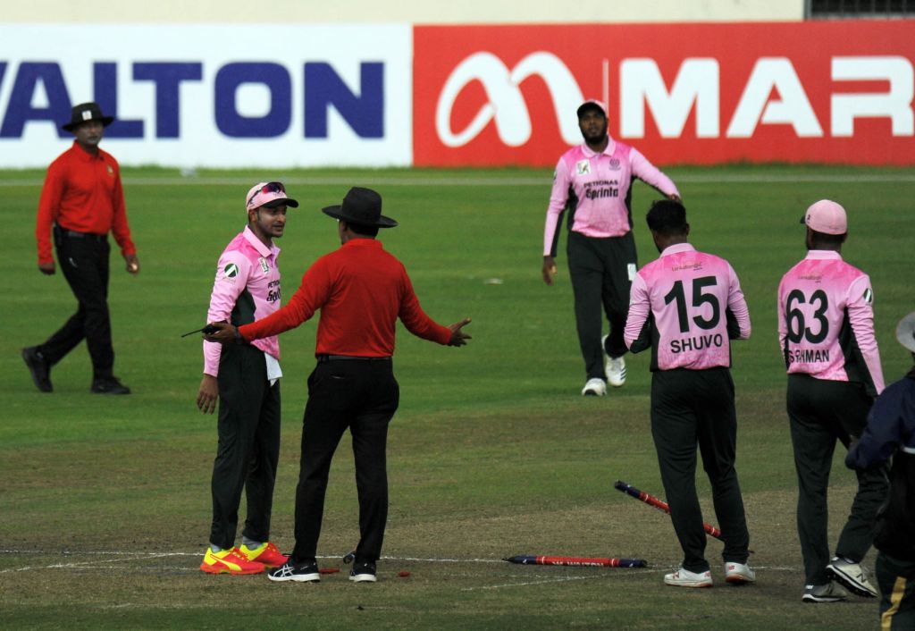 শুক্রবার মিরপুর শেরেবাংলা জাতীয় ক্রিকেট স্টেডিয়ামে চিরপ্রতিদ্বন্দ্বী আবাহনীর বিপক্ষে ইনিংসের পঞ্চম ওভারের পঞ্চম বলে সাকিবের আউটের আবেদনে সাড়া দেননি আম্পায়ার। ওই ওভারেই আবাহনীর অধিনায়ক সাকিবকে হাঁকান একটি চার ও একটি ছক্কা। পঞ্চম বলে সাকিব এলবিডব্লিউর আবেদন করলে আম্পায়ার সাড়া দেননি। এতে মেজাজ হারিয়ে সাকিব নন-স্ট্রাইকিং প্রান্তের স্টাম্পে লাথি মেরে ভেঙে দেন।