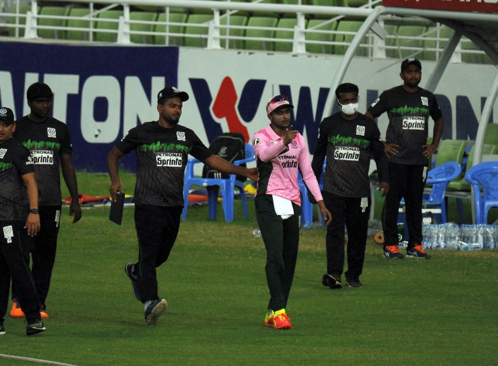 এরপর ৫.৫তম ওভারের সময় তুমুল বৃষ্টি নামলে আম্পায়ার মাহফুজুর রহমান খেলা বন্ধ রাখার ঘোষণা দেন। তিনি যখন মাঠকর্মীদের কাভার আনার ইশারা দিচ্ছেন, তখন সাকিব আম্পায়ারের দিকে এগিয়ে গিয়ে তিনটি স্টাম্পই তুলে উইকেটের ওপর ছুড়ে মারেন। তিনি এ সময় আম্পায়ারকে প্রচণ্ড ক্ষুব্ধ হয়ে কিছু একটা বলছিলেন।