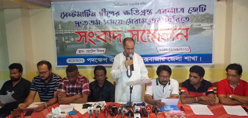 জেটি সংস্কারের দাবিতে শনিবার (১১ সেপ্টেম্বর) দুপুরে এক সংবাদ সম্মেলনে পদক্ষেপ বাংলাদেশ কক্সবাজার জেলা সভাপতি তোফায়েল আহম্মেদ আরো বলেন, সেন্টমার্টিন দ্বীপে পর্যটক পারাপারে ৮-১০টি জাহাজ, ২০০-৩০০ বাস-মিনিবাস, শতাধিক মাইক্রোবাস, ২০০ ট্যুর অপারেটর প্রতিষ্ঠান, ৪০০ ট্যুরিস্ট গাইড এবং ক্ষুদ্র ব্যবসায়ীসহ ৫০ হাজার মানুষের জীবন-জীবিকা সেন্টমার্টিনকে ঘিরে পরিচালিত হয়। এ সকল কর্মকাণ্ডের একমাত্র মাধ্যম সেন্টমার্টিন জেটি। অনেক দিন জেটিটির সংস্কার নেই। কিন্তু দ্বীপের প্রবেশদ্বার জেটি ছাড়া দ্বীপ একেবারে অচল। আর আগামী ১৫ অক্টোবরের মধ্যে জেটির মেরামত করা না গেলে পর্যটন শিল্প ক্ষতিগ্রস্ত হওয়ায় পাশাপাশি সরকার বিপুল রাজস্ব হারাবে। আর্থিক ক্ষতিরমুখে পড়বে এখাতে সম্পৃক্ত প্রায় অর্ধলাখ মানুষ।