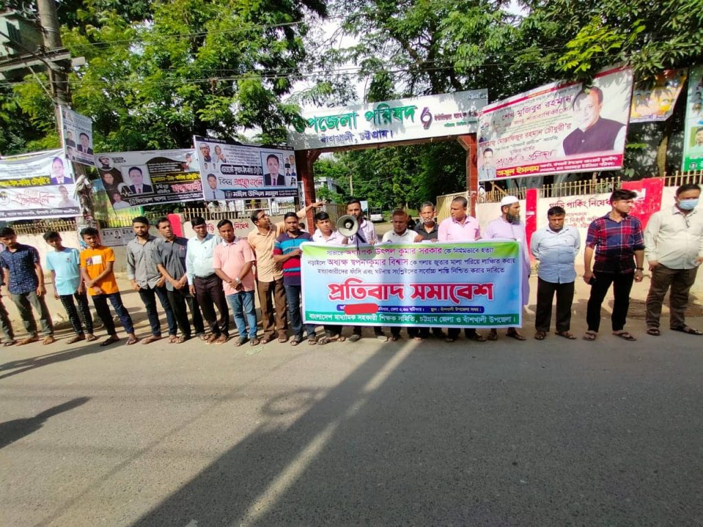 রবিবার (২৪ জুলাই) বিকালে বাঁশখালী উপজেলা পরিষদের সামনে অনুষ্ঠিত এ প্রতিবাদ সমাবেশে বক্তব্য রাখেন চট্টগ্রাম জেলা মাধ্যমিক সহকারী শিক্ষক সমিতির সভাপতি অমৃত কারণ, সাধারণ সম্পাদক বিপ্লব কুমার দত্ত, বাঁশখালী উপজেলা শাখার সভাপতি প্রকাশ কান্তি দাশ, সাধারণ সম্পাদক সেলিম উল হক চৌধুরী, শিক্ষক দীপক চক্রবর্তী, নেজাম উদ্দীন, মিল্টন দেব, পবন কান্তি দেব, শিমুল চক্রবর্তী, রুহল কাদের, জিয়াউর রহমান, সুমন দাশ, নিউটন দাশ, সুমন মুহুরী, সন্তোষ দাশ, আমির হোছাইন, দিদারুল ইসলাম, তোফাজ্জল হোছাইন, বাবুল দত্ত, দিদারুল করিম, বিপ্লব দেব, সৈকত দাশ।