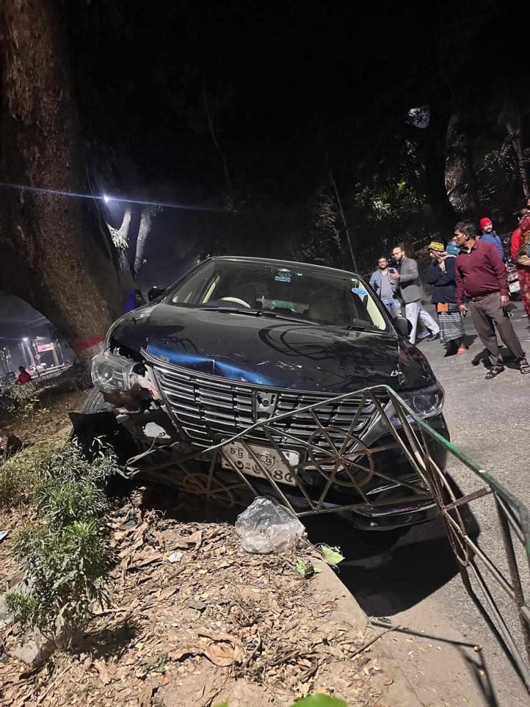 জানা যায় নিউ মার্কেট এলাকার স্বর্ণ ব্যাবসায়ী মাহবুবুর রহমানের ছেলে ফামিন (২৮) নামে বিদেশ ফেরত এক যুবক মদ্যপ অবস্থায় গাড়ি চালাচ্ছিলেন। এসময় তিনি গাড়ির নিয়ন্ত্রণ হারিয়ে ফেলেন। এতে রিক্সা দুটো সহ গাড়িটির সামনের অংশ দুমড়ে মুচড়ে যায়। তবে এখনো পরিচয় জানা যায়নি ওই দুই রিক্সা চালকের।