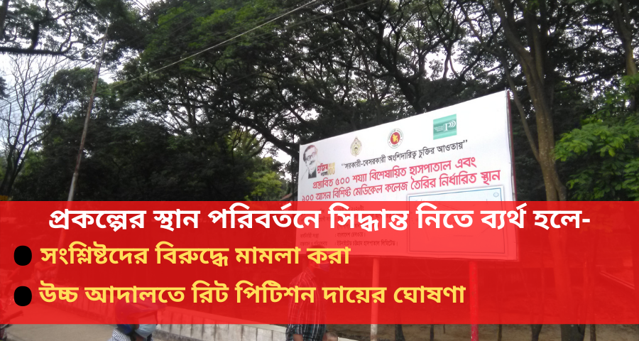 প্রকল্পের স্থান পরিবর্তনে সিদ্ধান্ত নিতে ব্যর্থ হলে বিএইচআরএফ’র পক্ষ থেকে সংশ্লিষ্টদের বিরুদ্ধে প্রয়োজনীয় ব্যবস্থা নিতে আদালতে মামলা কিংবা উচ্চ আদালতে রিট পিটিশন দায়ের করার কথাও উল্লেখ করে নোটিশে।