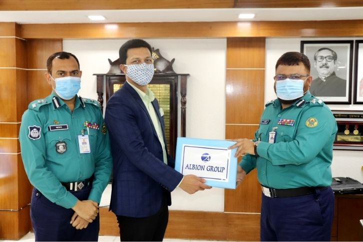 বিশ্বব্যাপী করোনার তৃতীয় ঢেউ মোকাবেলায় করোনায় সম্মুখ যোদ্ধা চট্টগ্রাম মেট্রোপলিটন পুলিশ (সিএমপি) সদস্যদের জন্য মাস্ক ও হ্যান্ড স্যানিটাইজার দিয়েছে এলবিয়ন গ্রুপ।