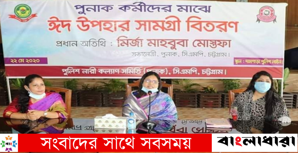 নগরীর দামপাড়াস্হ চট্টগ্রাম মেট্রোপলিটন পুলিশ লাইন্সের মাল্টিপারপাস শেডে পুলিশ নারী কল্যাণ সমিতি (পুনাক), সিএমপি, চট্টগ্রাম এর উদ্যোগে পুনাক কর্মীদের মাঝে ঈদ উপহার সামগ্রী বিতরণ করা হয়।